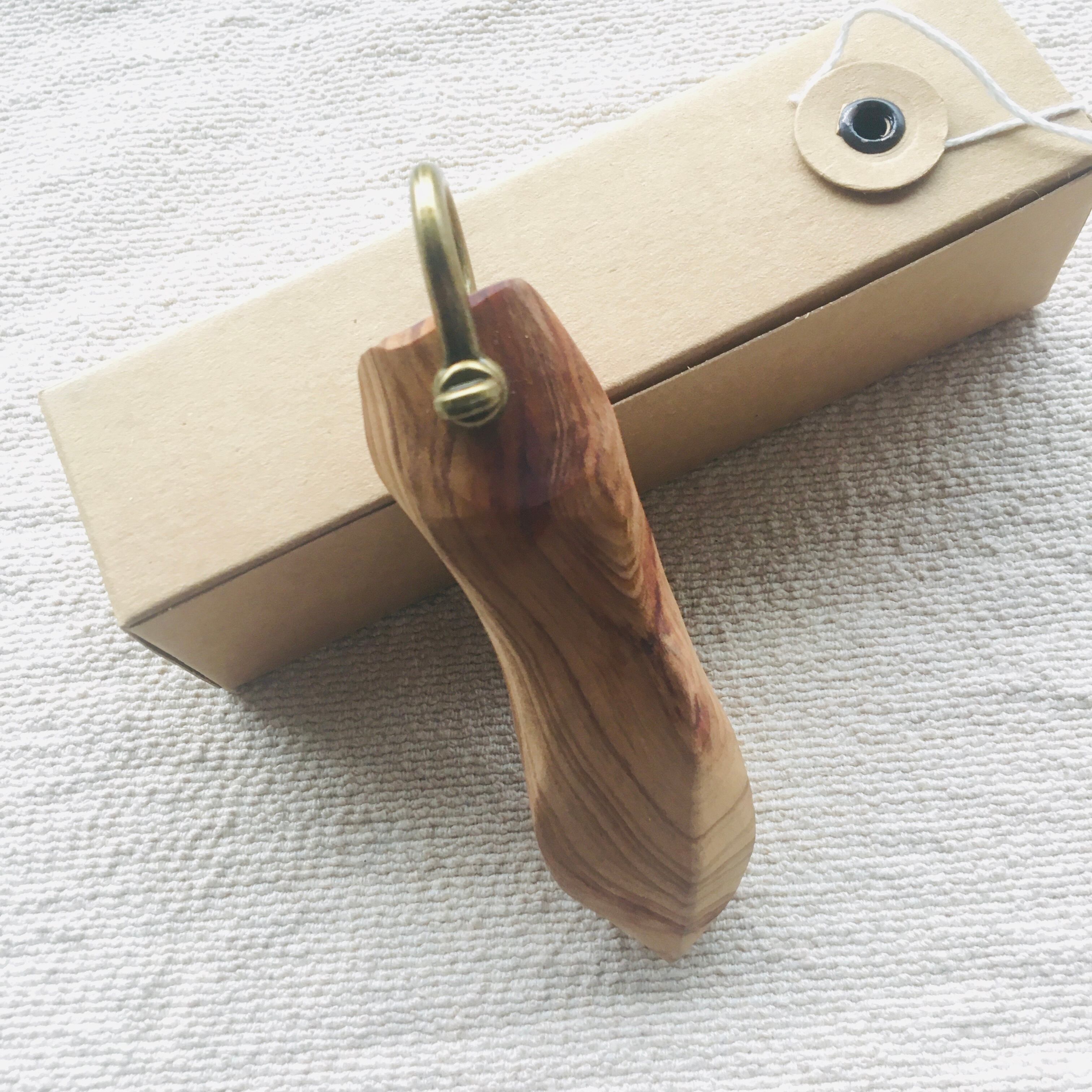 自然の力強さを感じる屋久杉材を使用した、シンプルなデザインのキーホルダー。